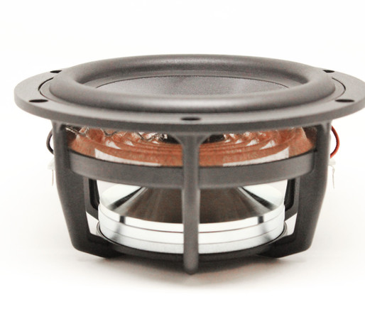 The motor structure uses two high grade NdFeB magnets, a cooper ring and specific devices to manage the inductance modulation. It uses rigid and damped CGF cone and low mechanical lost surround for fast and clean transient response.